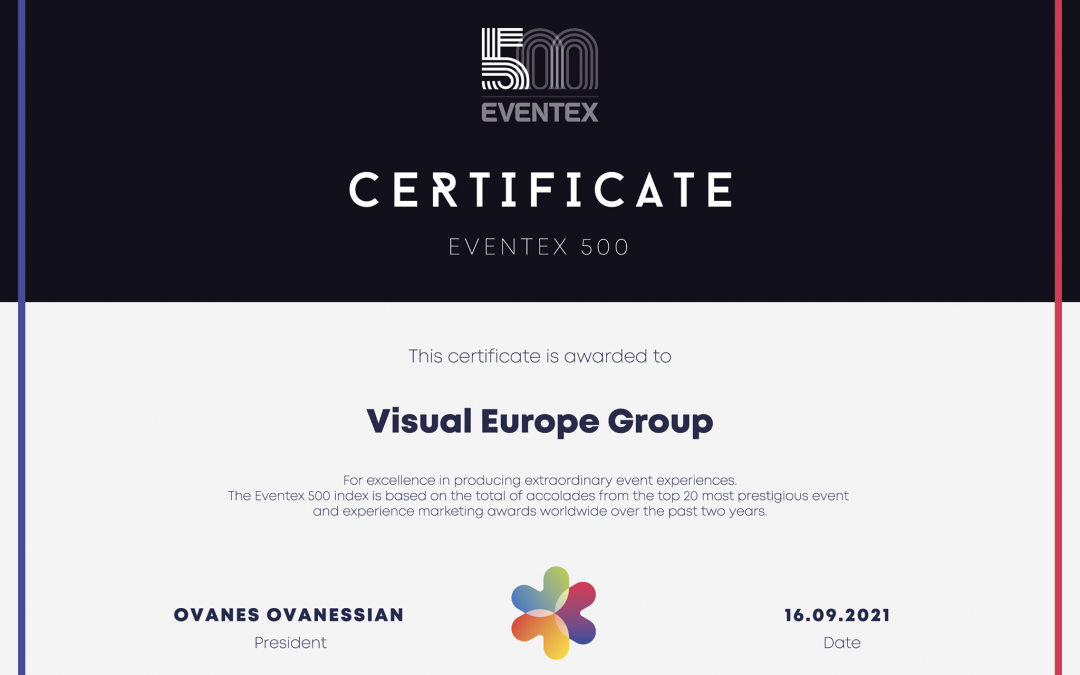 Visual Europe Group is now on Eventex top 500 list of the world’s most bestselling communication, event organizing and event services agencies on track. The index rewards companies with positive ranking which performed the best on the 20 most prestigious event marketing competitions in the world during the last two years.