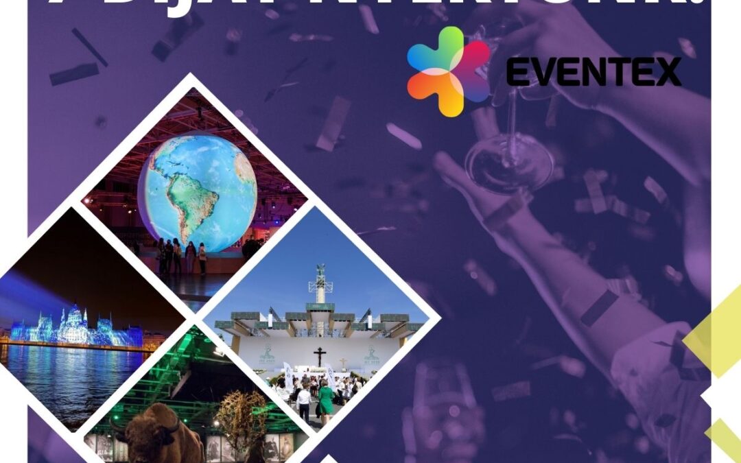 Az Eventex a világ egyik legrangosabb rendezvényes és élménymarketinges díjának számít. Idén 12. alkalommal ítélték oda több száz kategóriában, 28 ország 606 pályázója között. Négy rendezvénnyel pályáztunk – Nemzetközi Eucharisztikus Kongresszus, „Egy a Természettel” Vadászati és Természeti Világkiállítás, Szent István Nap, PLANET Budapest Fenntarthatósági Expó és Világtalálkozó –, és összesen 7 díjat nyertünk: egy aranyat, két ezüstöt és négy bronzot.